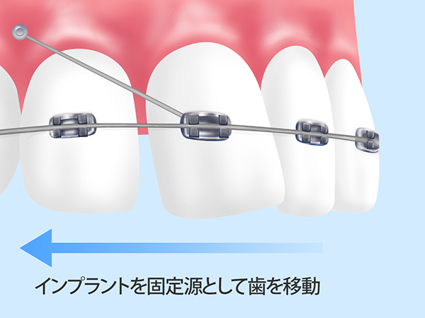 歯を効率的に動かすために、歯ぐきの骨に小さなチタン製のスクリュー(インプラントアンカー)を一時的に埋め込み、そこを固定源として歯を引っ張る治療法です。通常の矯正では難しい歯の移動も正確にコントロールでき、治療期間の短縮や仕上がりの精度向上が期待できます。