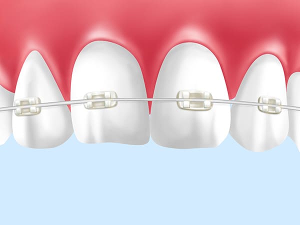 セラミック製のブラケットです。低アレルギー性で比較的目立ちません。メタルブラケットと同等の効果が得られます。