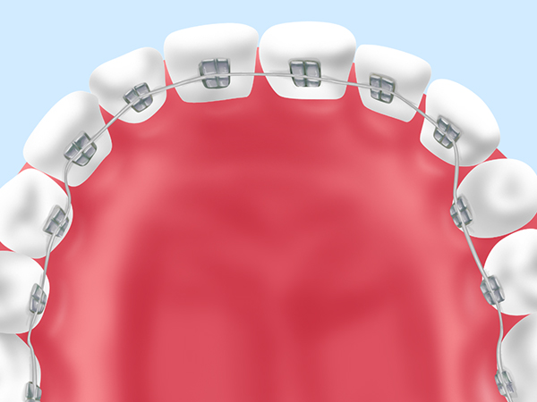 もっとも一般的な矯正方法で、歯の表面(外側)にブラケットとワイヤーを装着して歯を動かします。装置が表側につくため見た目が気になるというデメリットはありますが、幅広い症例に対応でき、歯の細かな移動や咬み合わせの調整も正確に行えるのが特長です。