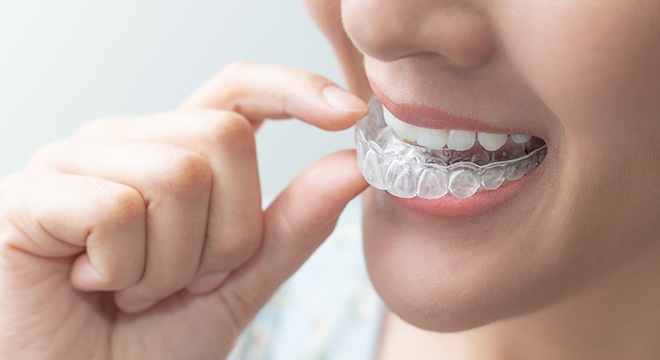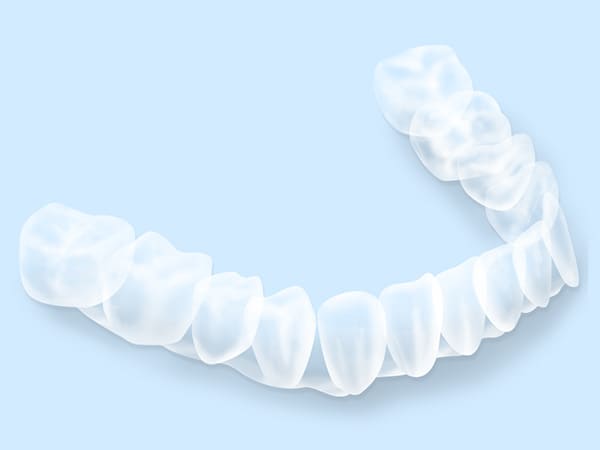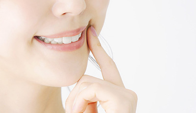 透明なマウスピースを使用して矯正します。周囲から目立ちにくいこと、食事や歯磨きの際に取り外しできること、ワイヤーを使った矯正装置よりも違和感や不快感が少ないことなどがメリットです。