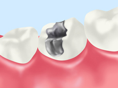 合金のもの(いわゆる銀歯)です。保険が適用されるので安価ですが、見た目に違和感があり、磨耗や歯ぐきの黒ずみを起こすことがあるので、定期的(4~5年)に取り替える必要があります。
