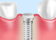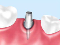 インプラントをあごの骨に埋め込みます。治療は麻酔をして行うので痛みなどは感じません。治療は1時間前後で終了します。