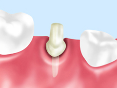 銀合金の柱です。保険が適用されるので安価ですが、金属アレルギーのリスクがあります。金属素材なので光の透過性はありません。長年使用すると金属の影響によって歯ぐきが黒ずむことがあります。