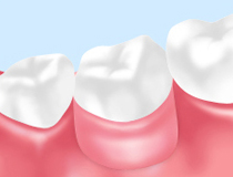 表面にセラミック、内面・裏面に合金を使用した被せものです。強度に優れており、変色・磨耗の心配もありません。