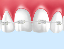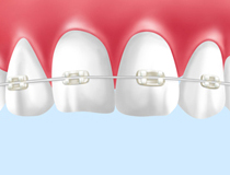 透明で目立ちにくいプラスチックのブラケットです。メタルブラケットと同等の効果が得られます。