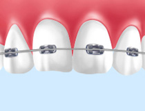 一般的に使われている金属性のブラケットの矯正装置です。見た目は目立ちますが安価で歯の動きがはやく、治療期間は短く済みます。